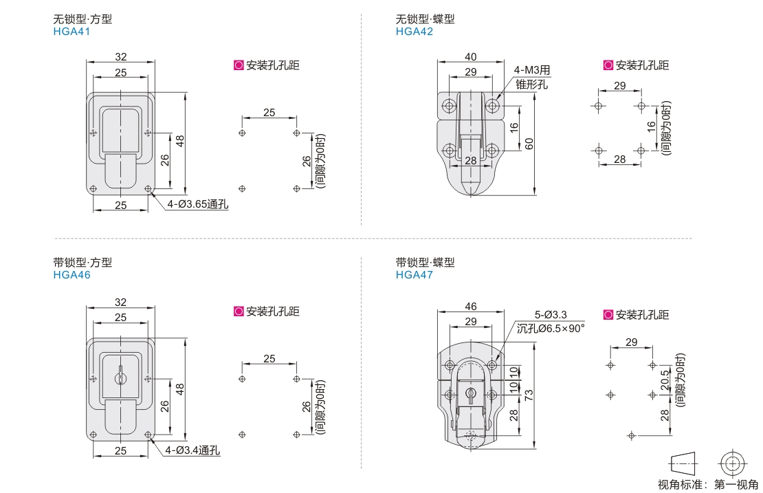 | HGA46 | 带锁型 | 方型 | |||