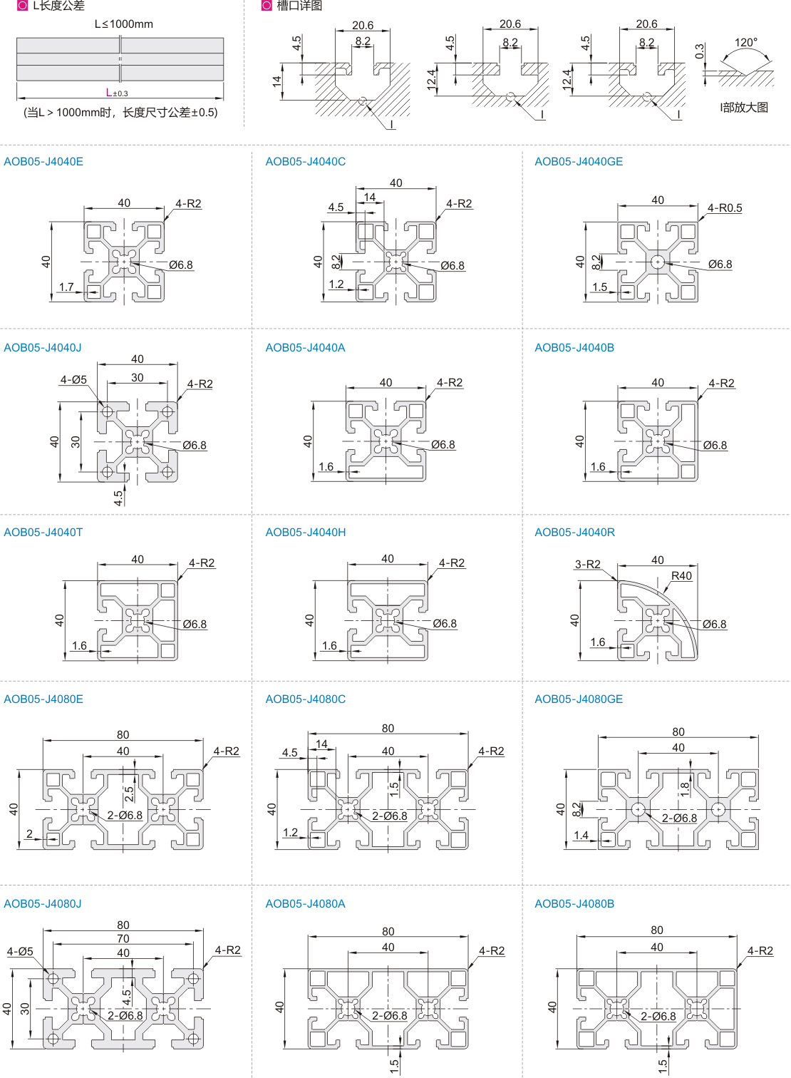 铝合金型材 欧标40槽宽8.2系列 边长40/80mm A6063-T5 喷砂氧化