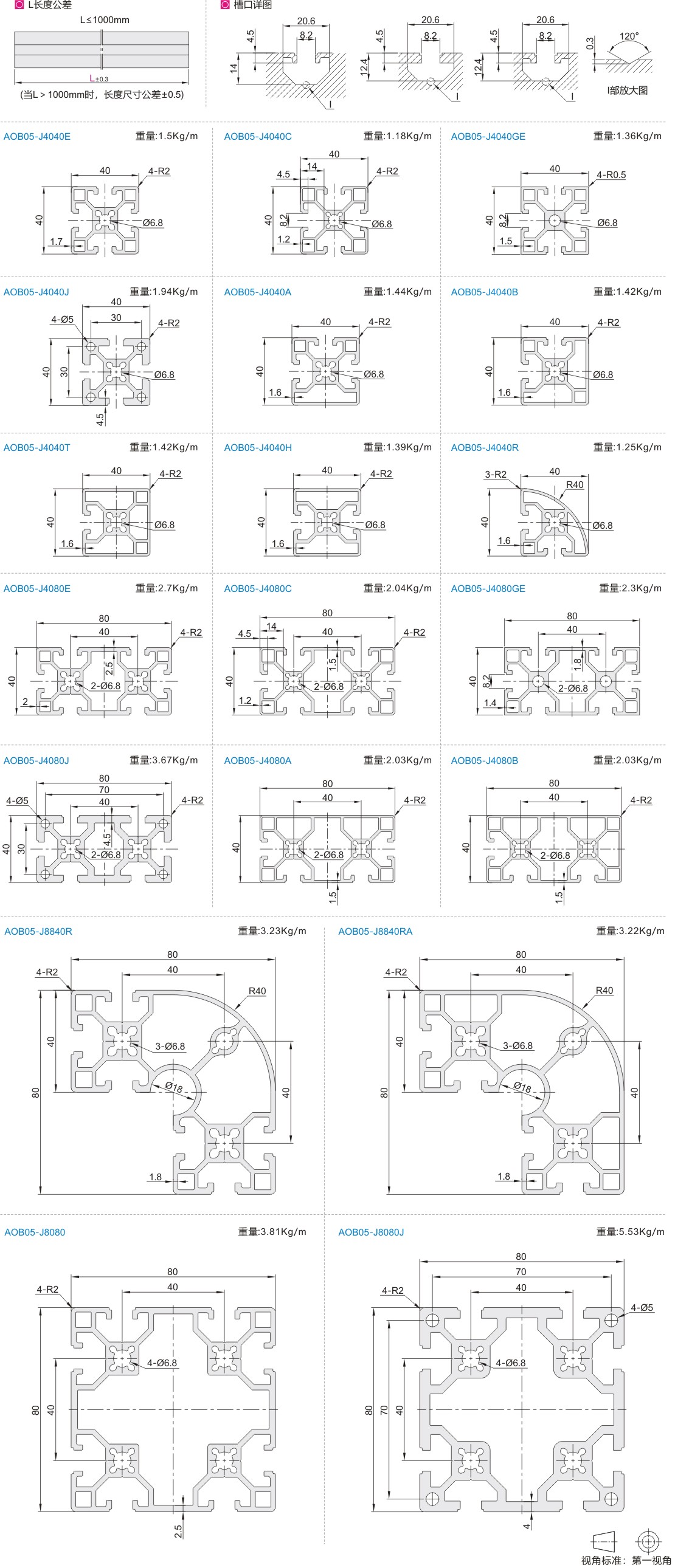 铝合金型材 欧标40系列 实用型 槽宽8.2 A6063-T5 喷砂氧化