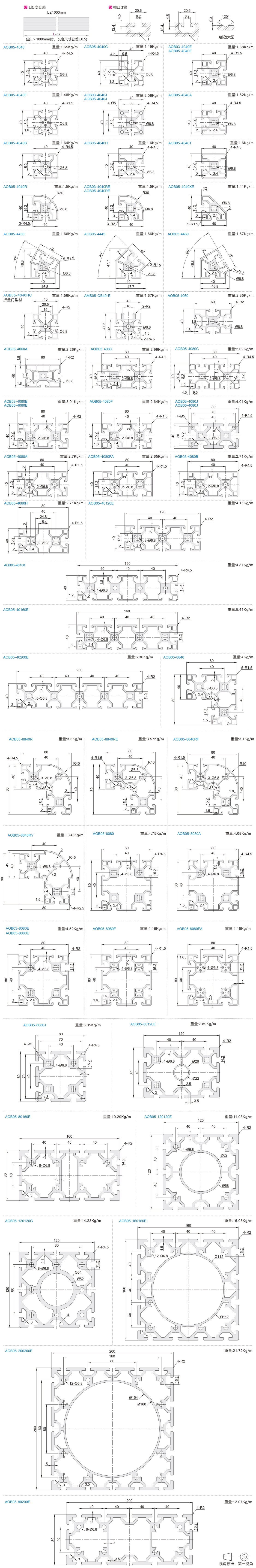 铝合金型材 欧标40系列 槽宽8.2 A6063-T5 喷砂氧化/黑色氧化