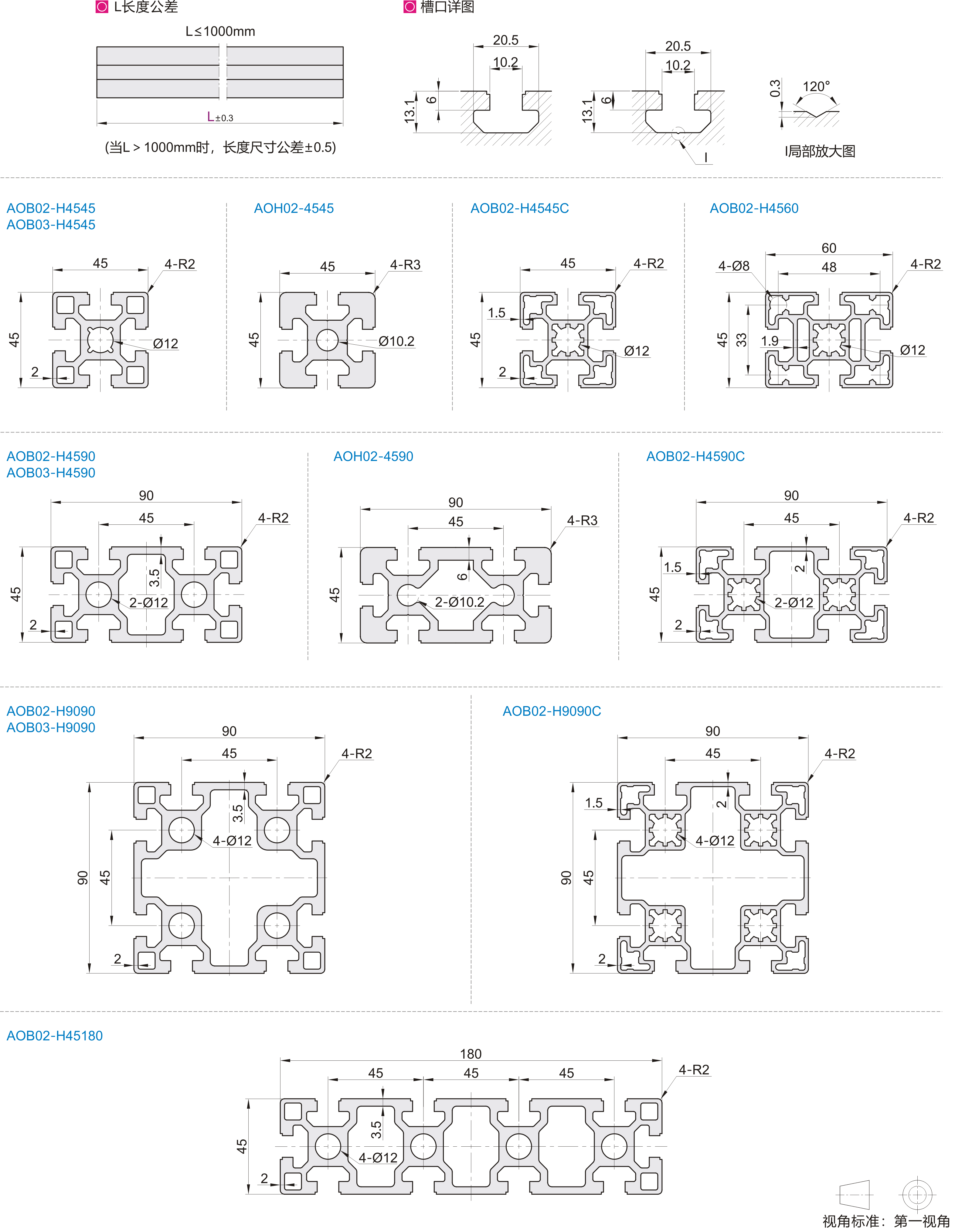铝合金型材 欧标45系列 槽宽10.2 槽口壁厚6