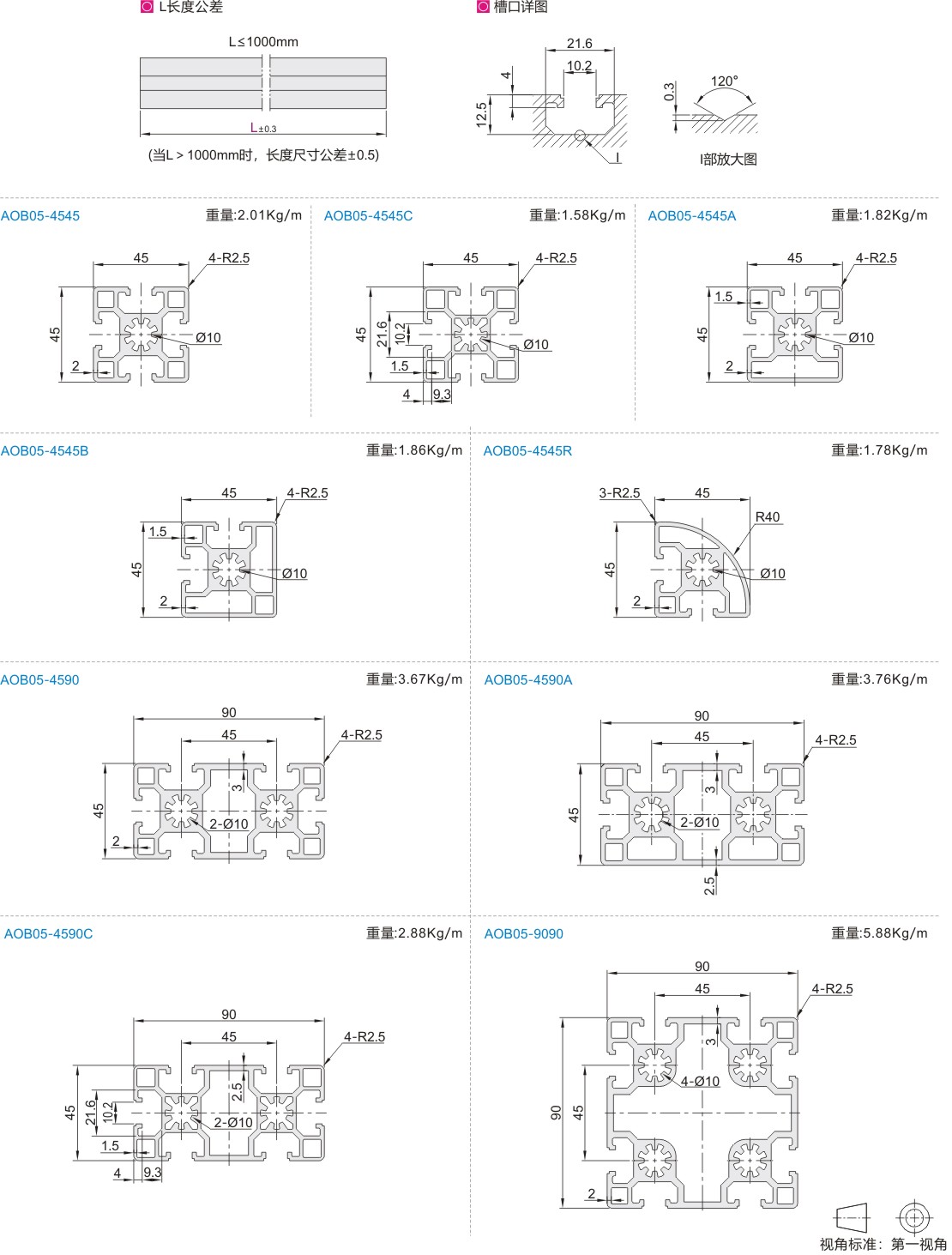 铝合金型材 欧标45系列 槽宽10.2 A6063-T5 喷砂氧化 槽口壁厚4