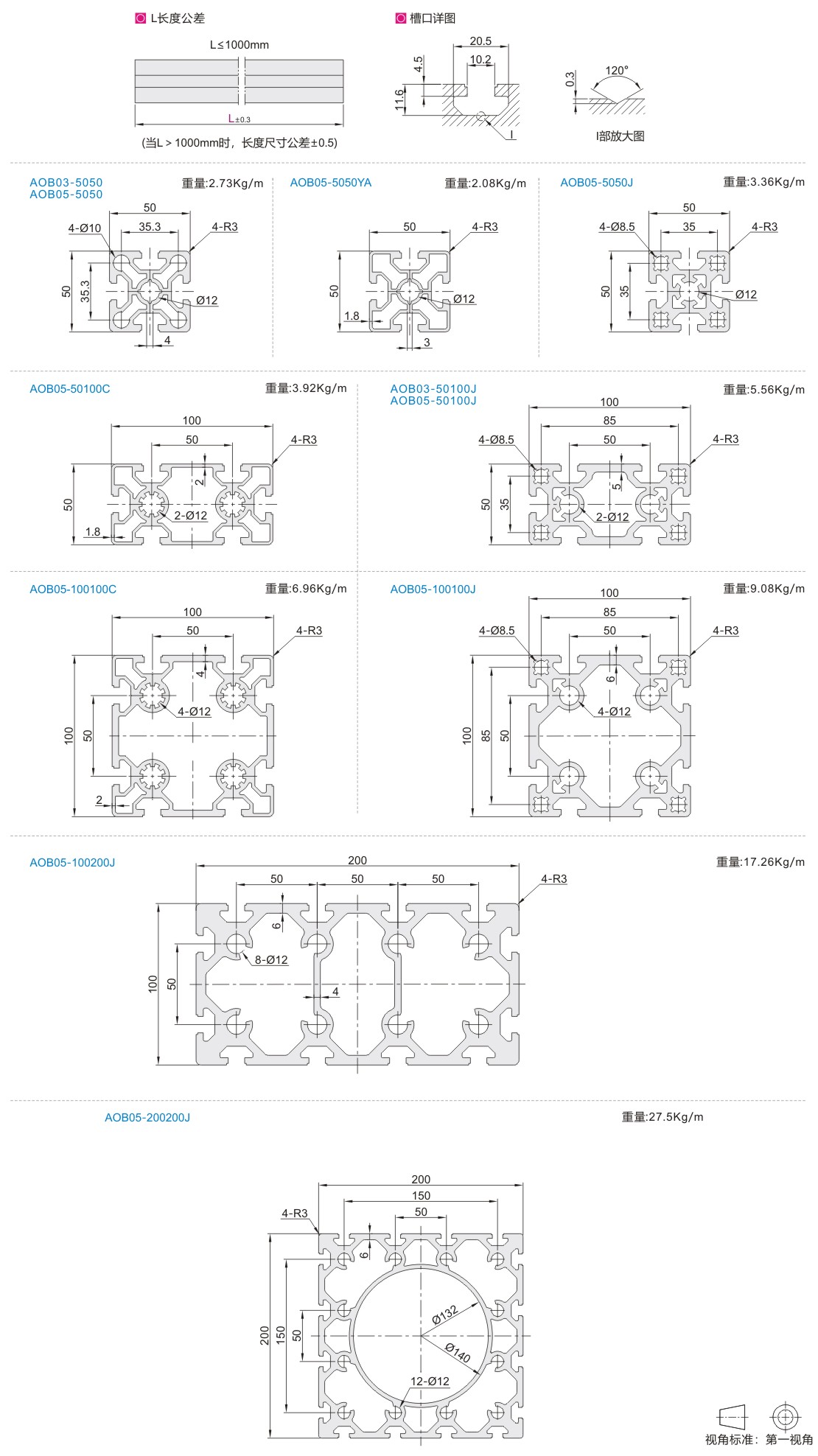 铝合金型材 欧标50系列 槽宽10.2 A6063-T5 喷砂氧化/黑色氧化 槽口壁厚4.5