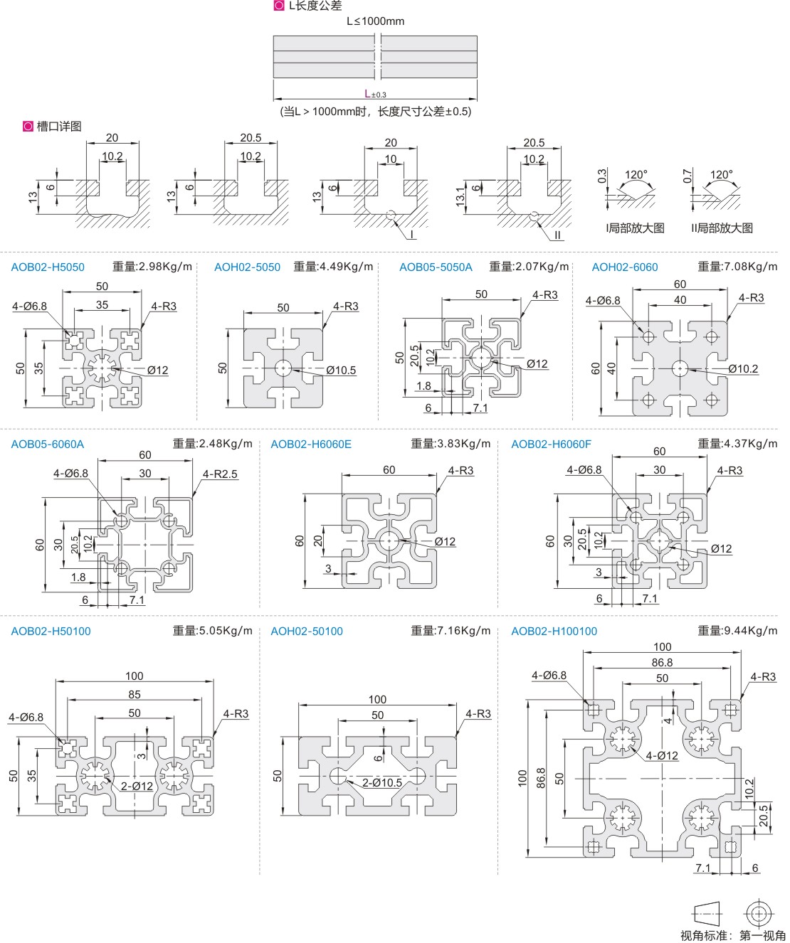 铝合金型材 欧标50/60系列 槽宽10.2 A6063-T5/A6063-T6/A6005-T6 喷砂氧化/碱砂氧化 槽口壁厚6