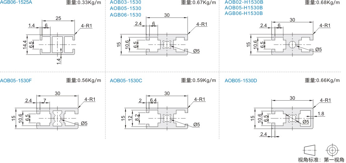 铝合金型材 15系列 槽宽6.5/8.2 A6063-T5/A6063-T6 喷砂氧化/喷砂电泳/黑色氧化/碱砂氧化