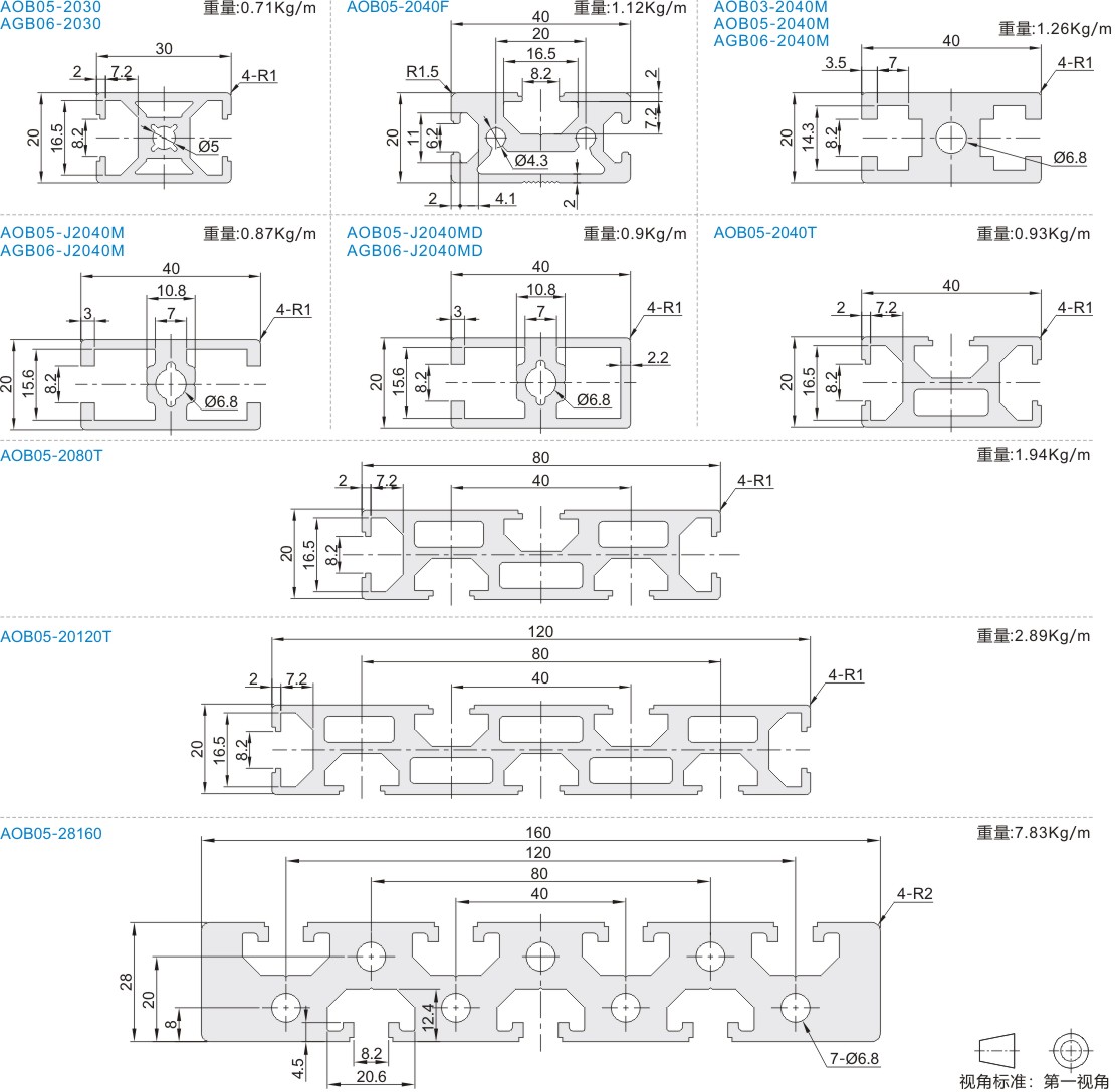 铝合金型材 20系列 A6063-T5 喷砂氧化/喷砂电泳/黑色氧化