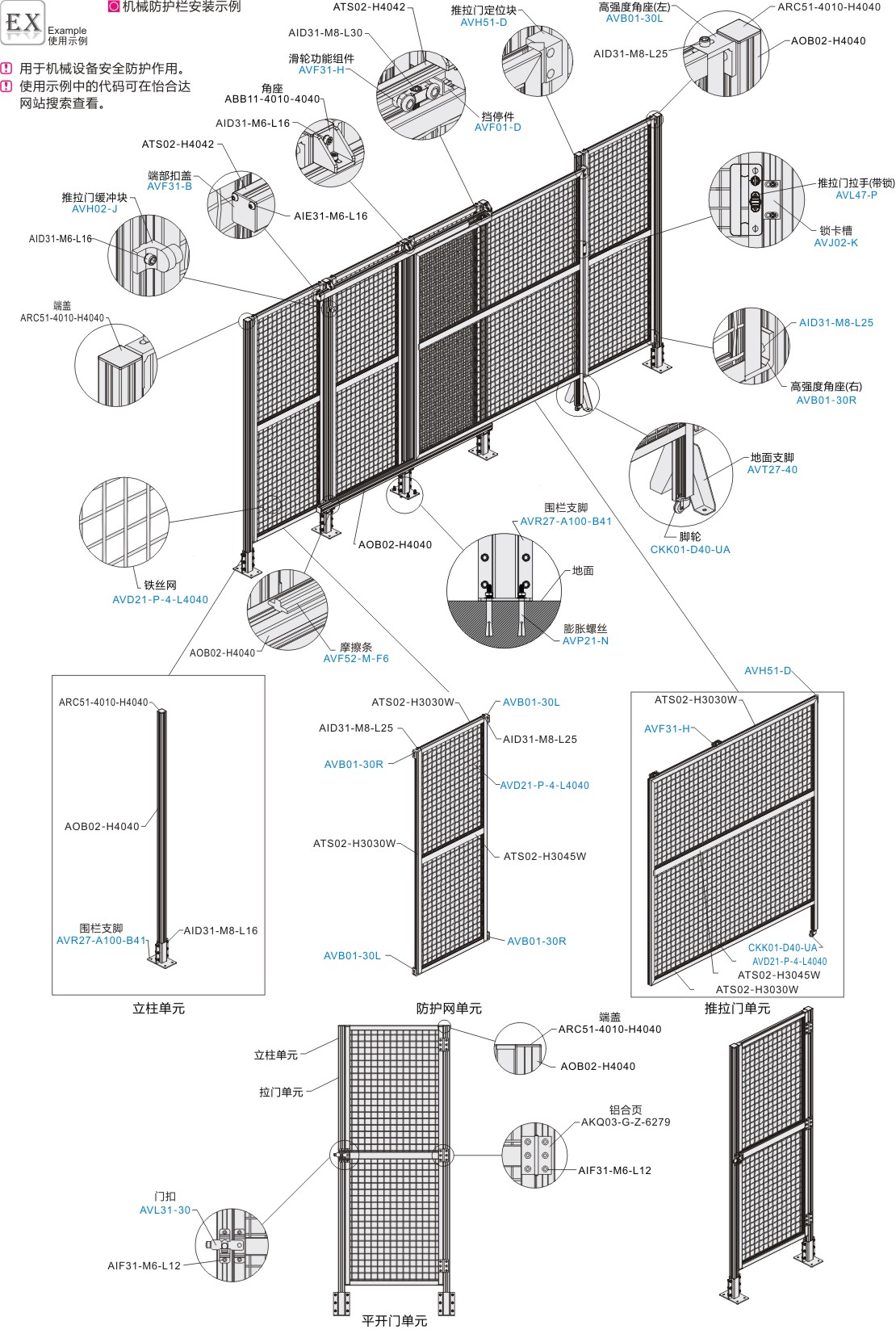 铝合金型材 机械防护栏 30系列 A6063-T5/A6063-T6 喷砂氧化/碱砂氧化