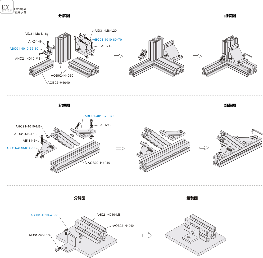 AID31-M8-L16、AIK31-8、AHC21-4010-M8、AID31-M8-L20、AIH21-8、AOB02-H4080、AOB02-H4040详情请在怡合达官网搜索查看。