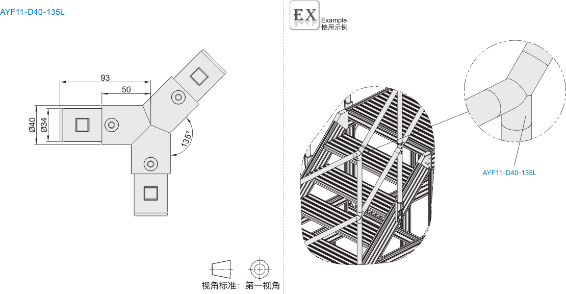 | AYF11-D40-135L | 135°L型接头 | ADC12 | 光饰 |