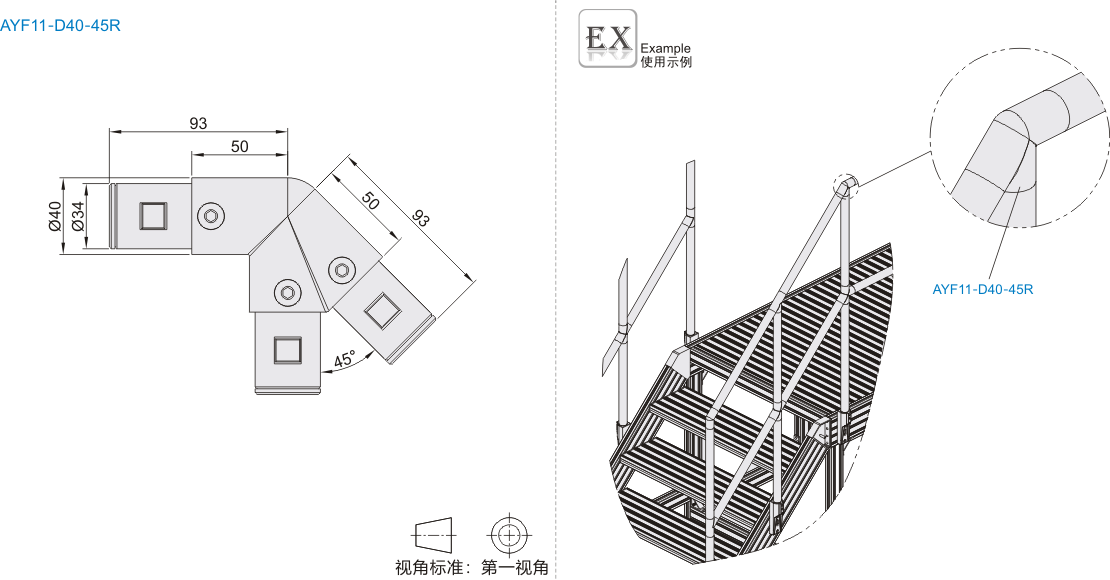 | AYF11-D40-45R | 45°L型接头右 | ADC12 | 光饰 |
