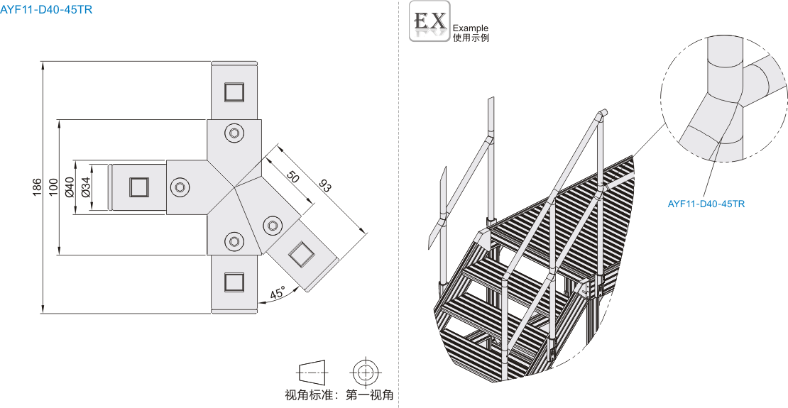 | AYF11-D40-45TR | 45°T型接头右 | ADC12 | 光饰 |