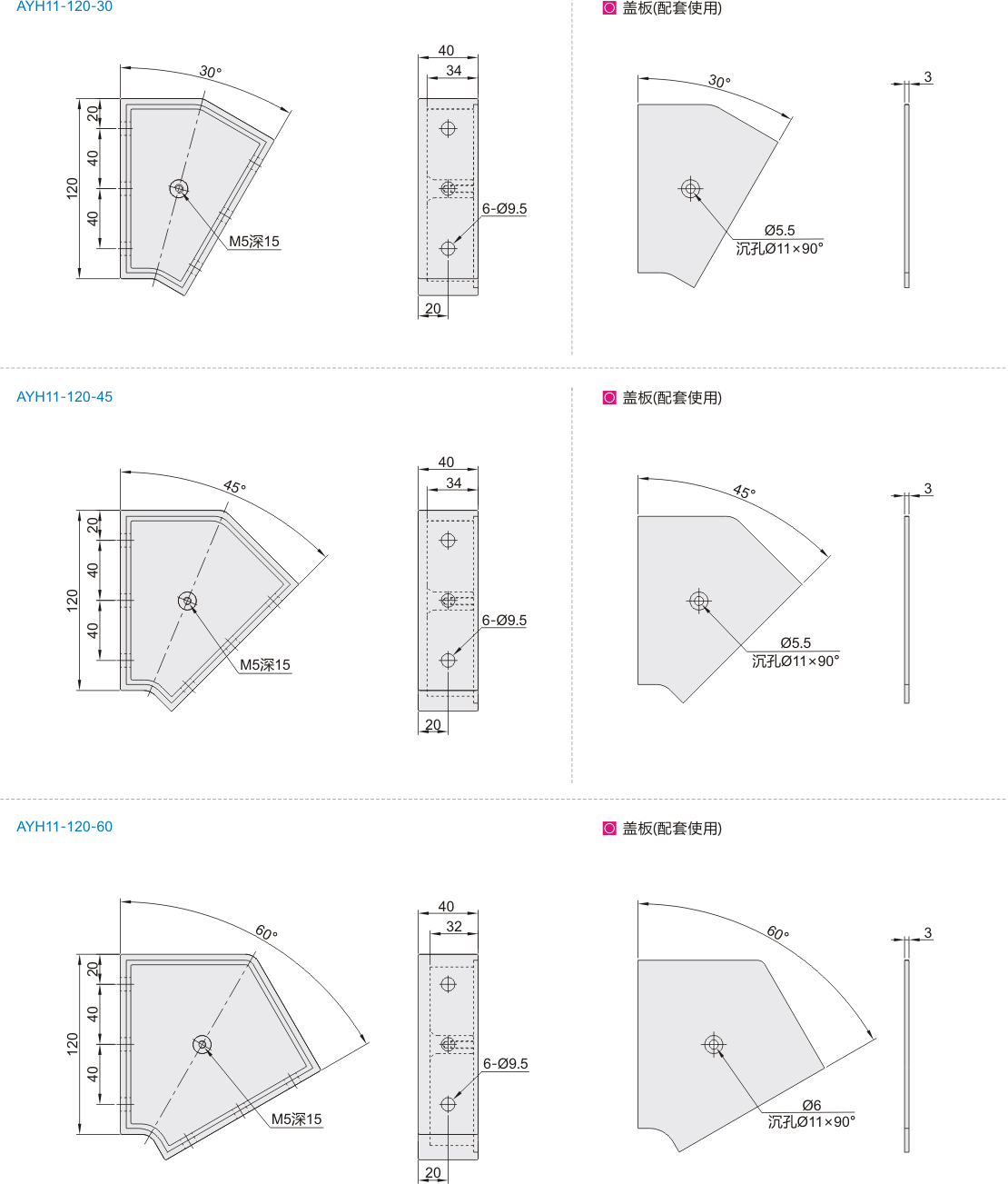 | AYH11 | 角连接件 | ADC12 | 光饰 |