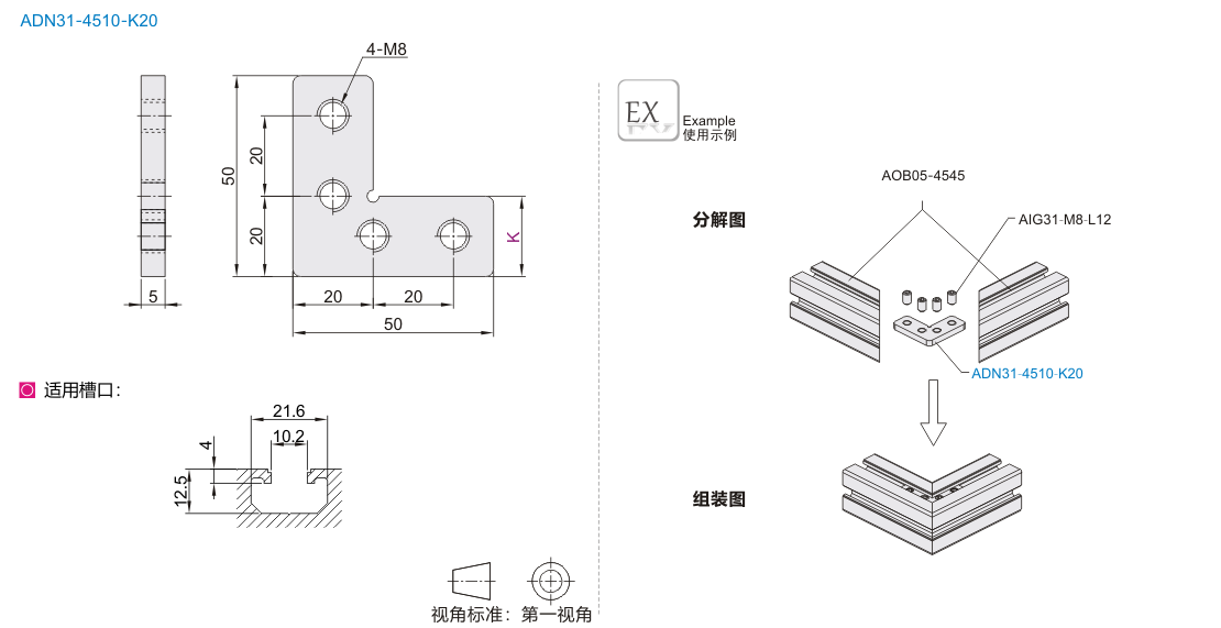 | ADN31-4510 | 槽内连接件 | SUS304 | 单面拉丝 |