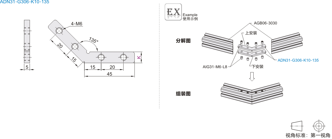 | ADN31-G306 | 135°槽内连接件 |