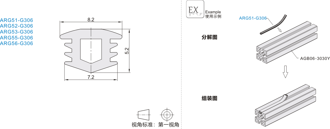 | ARG51 | 密封条 | PVC | 浅灰色(类似于RAL7047) | ||||||||||||