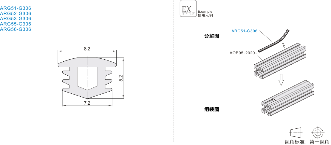 | ARG51-G306 | 密封条 | PVC | 浅灰色(类似于RAL7047) |