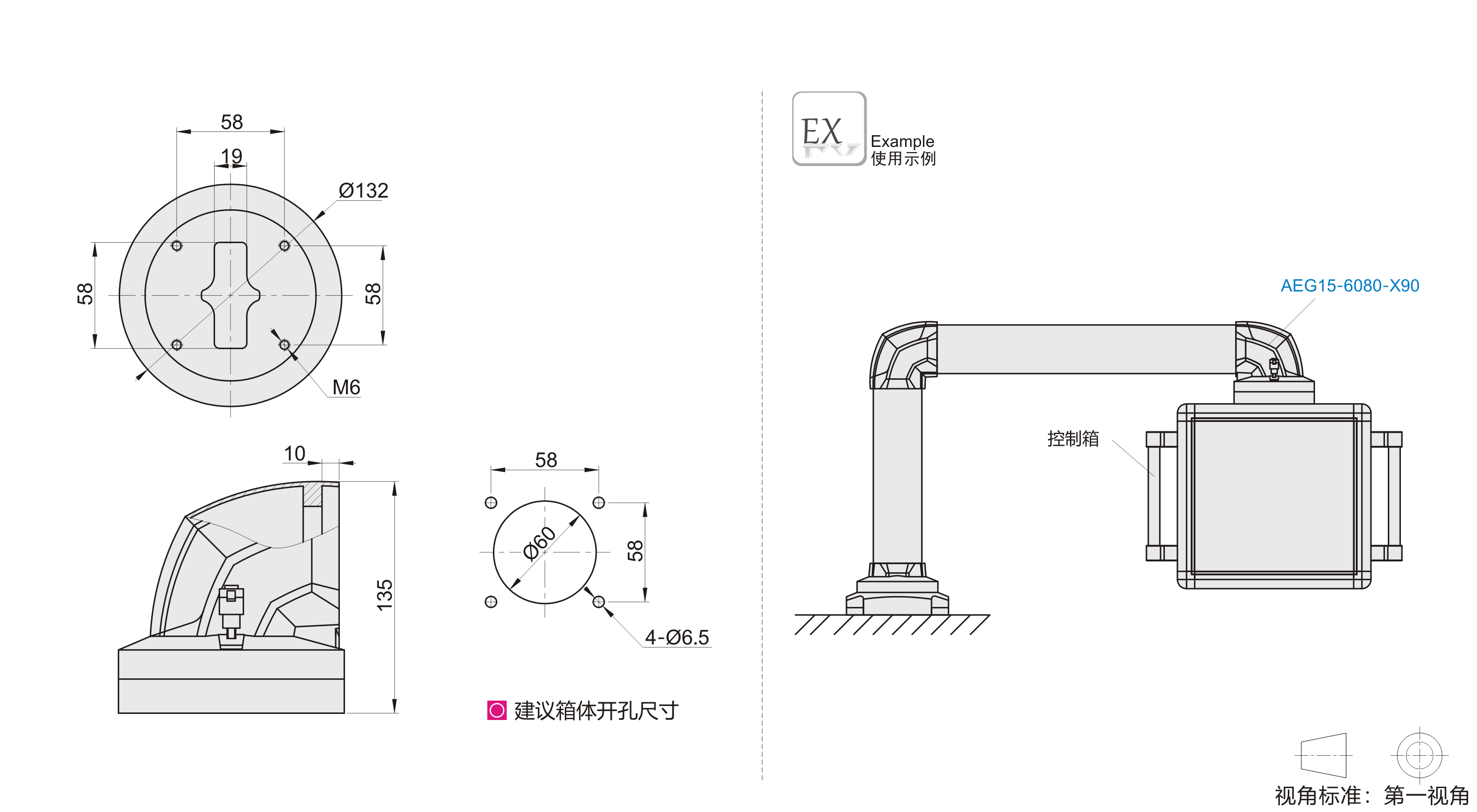 | AEG15-6080-X90 | 90°箱体连接件 | ADC12 | 喷塑 |