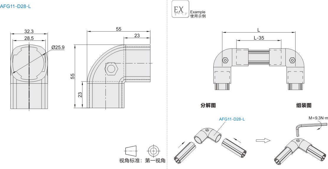 | AFG11-D28-L | 90°外接头 | ADC12 | 喷砂 |