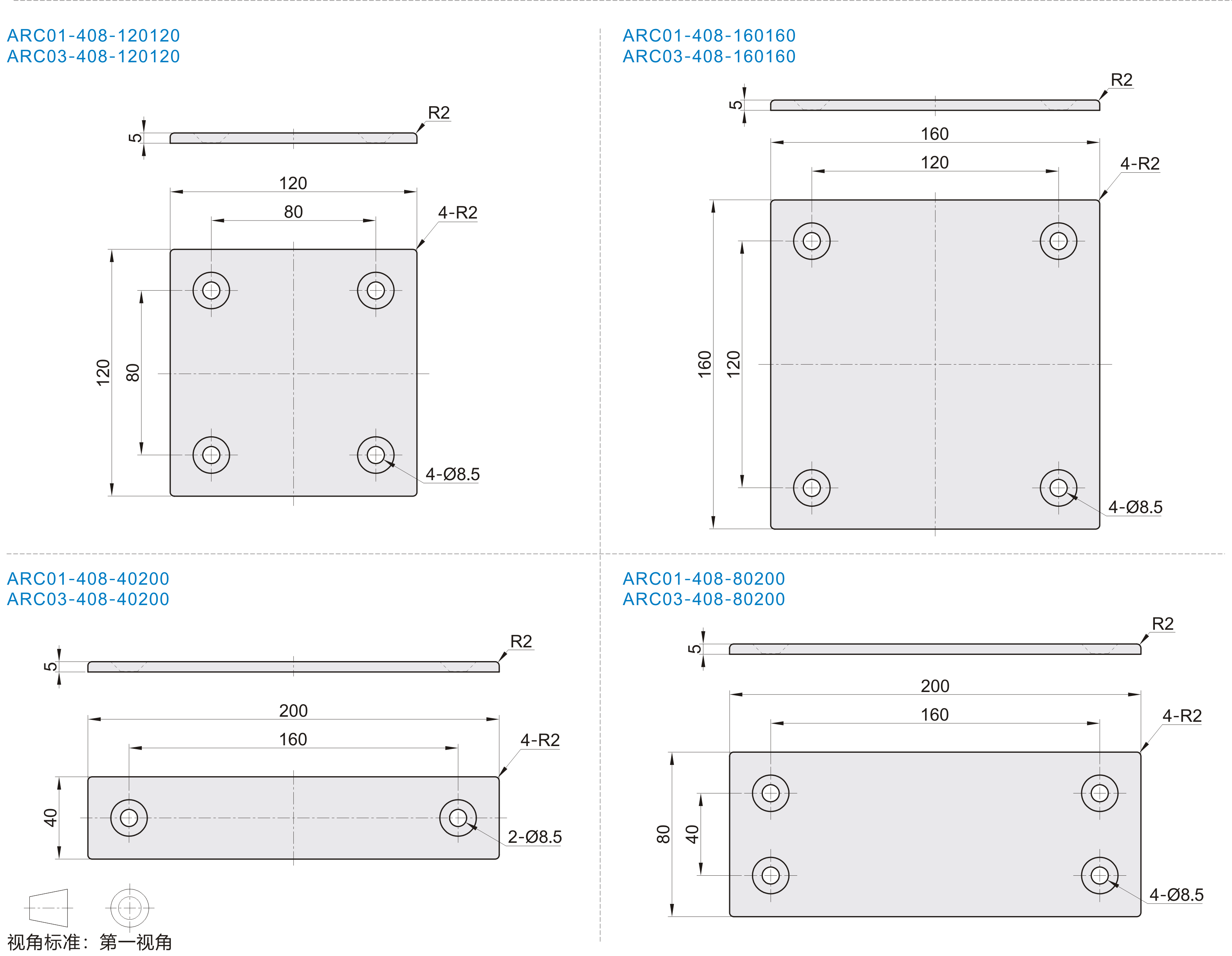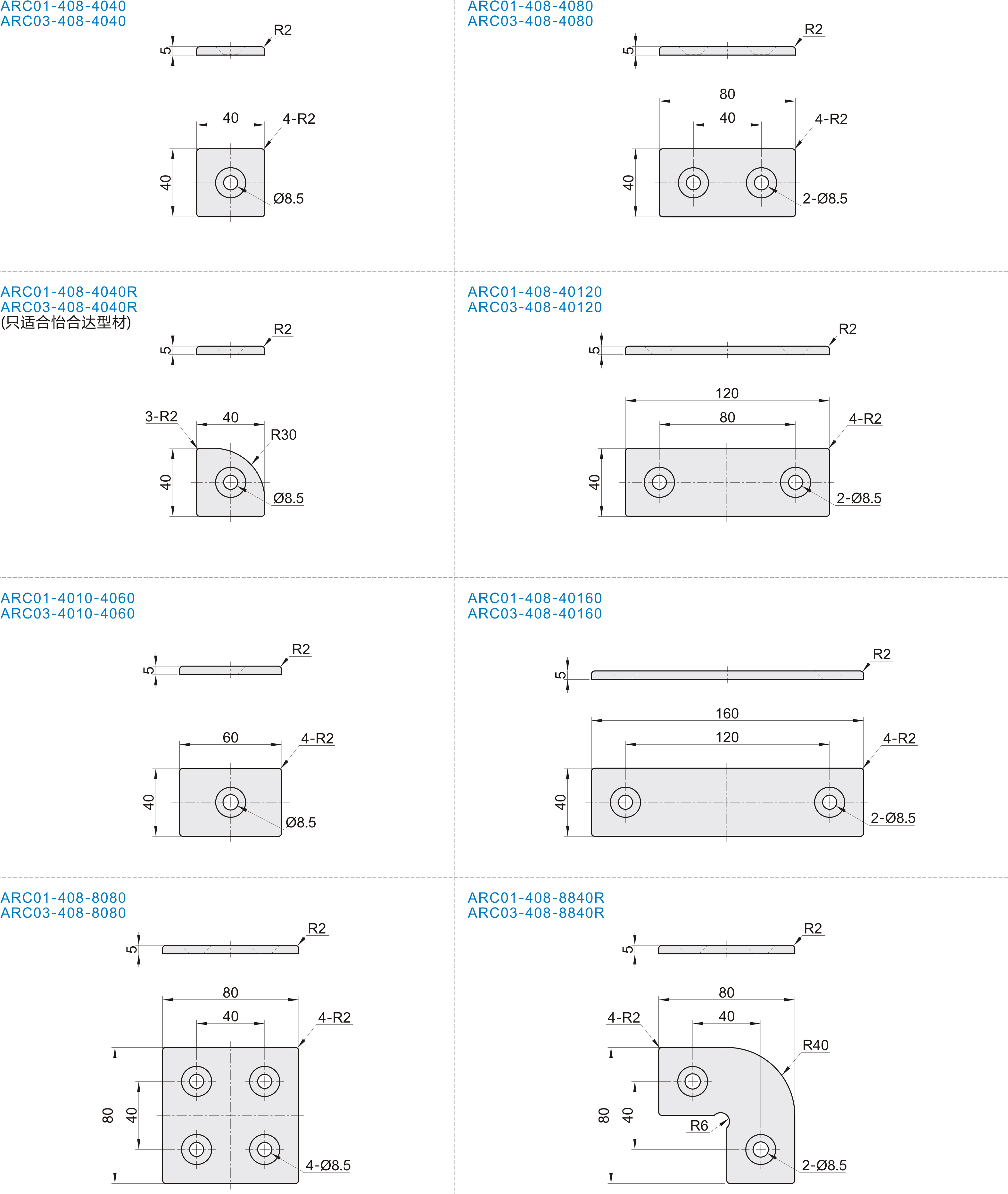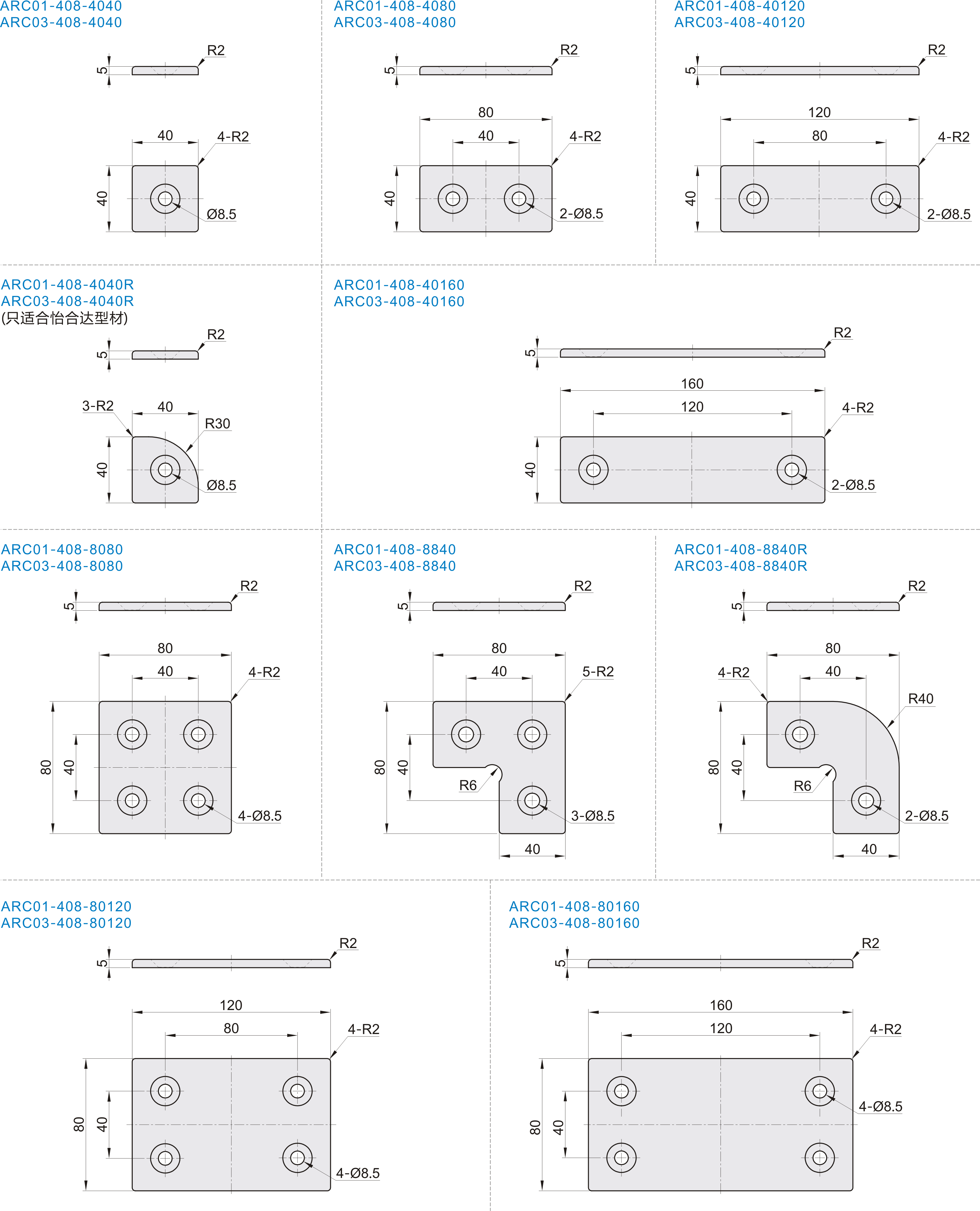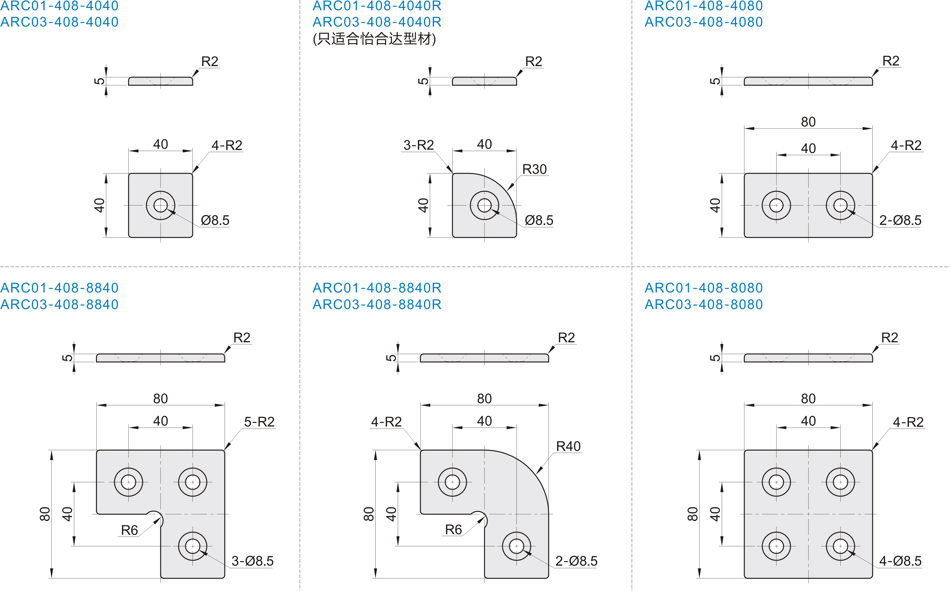| ARC01-408-4040 | ARC03-408-4040 | 18.6 | 4040 E | 4040 4040C 4040E 4040F 4040J 4040A 4040B 4040HC | 铝合金端盖配合 AIF31-M8-L16使用 (型材螺纹孔口倒角C1 .0) |