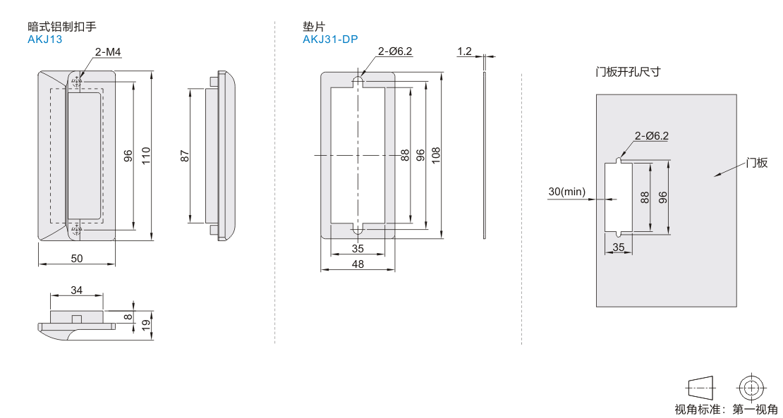 暗式铝制扣手/垫片 型材通用配件系列 门配件