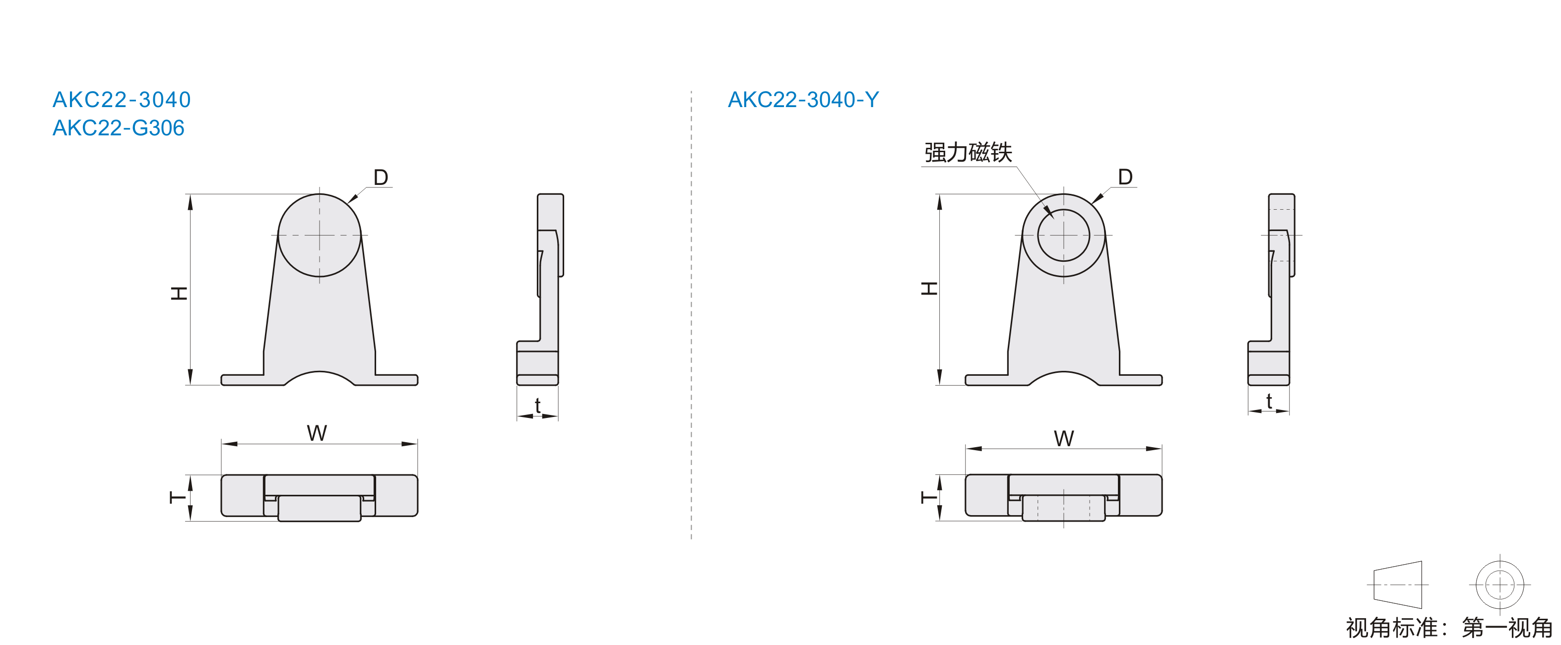 H | D | T | t | W | 适用型材 | 重量 (g/pcs) |