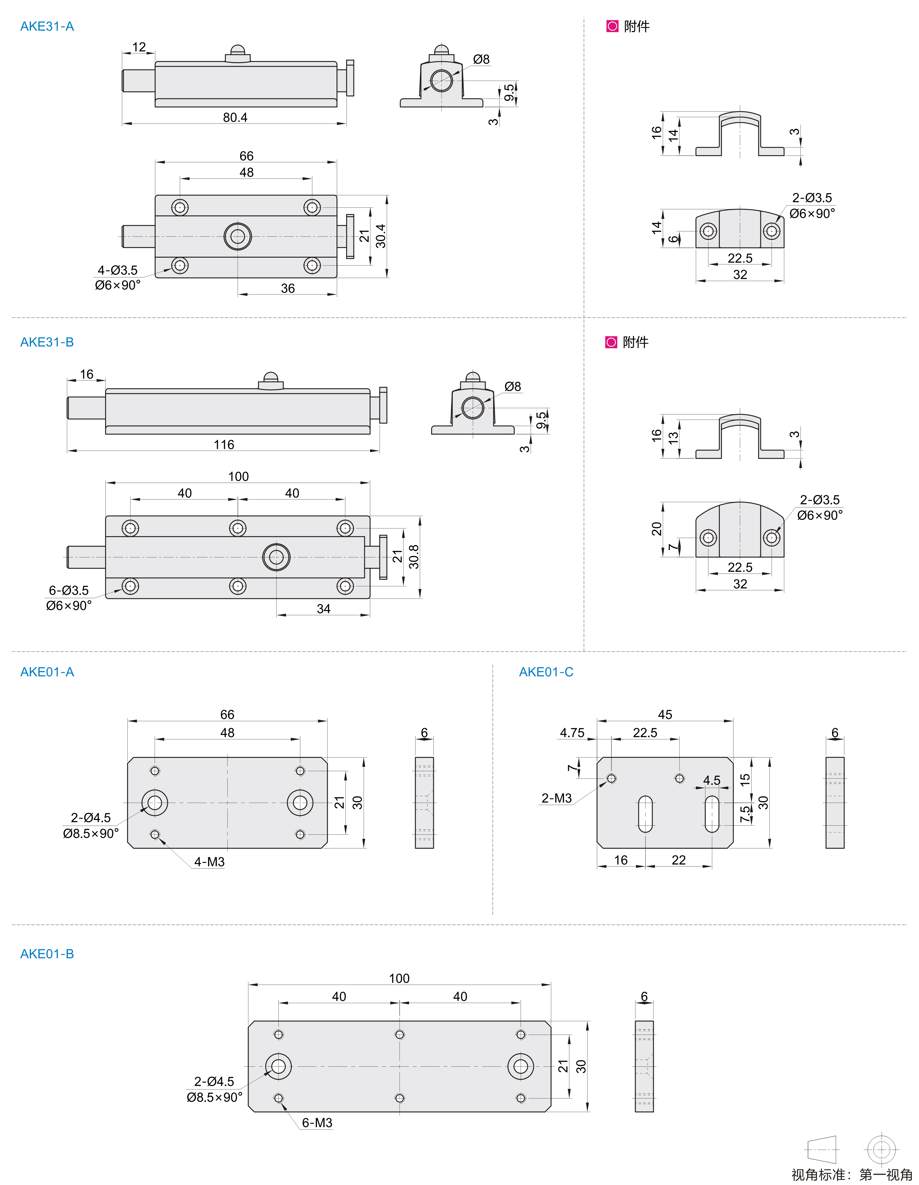 | AKE01 | 按钮插销连接板 | A6063-T5 | 喷砂氧化 |
