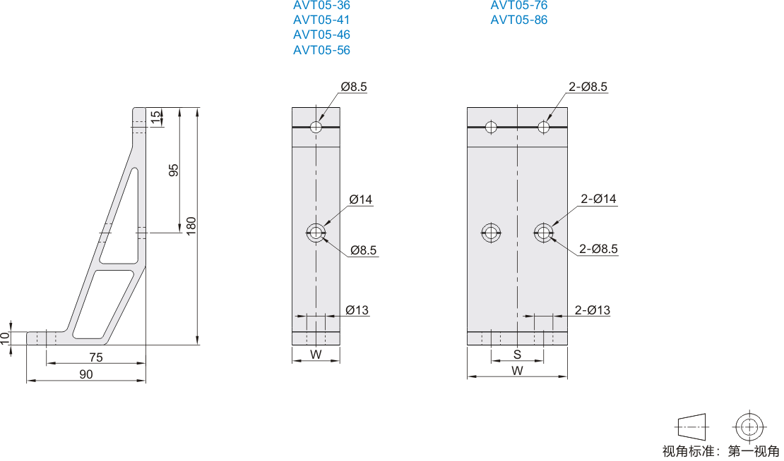 | 代码 | W | S | 适用型材面 | 重量(g/pcs) |