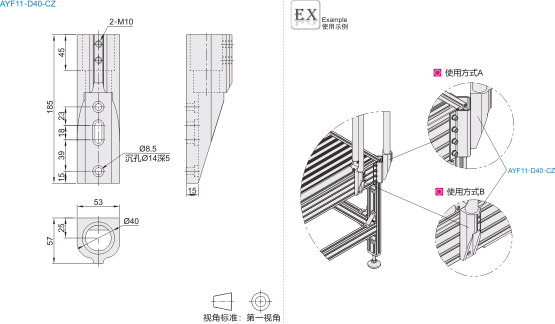 | AYF11-D40-CZ | 侧边支座 | ADC12 | 光饰 |