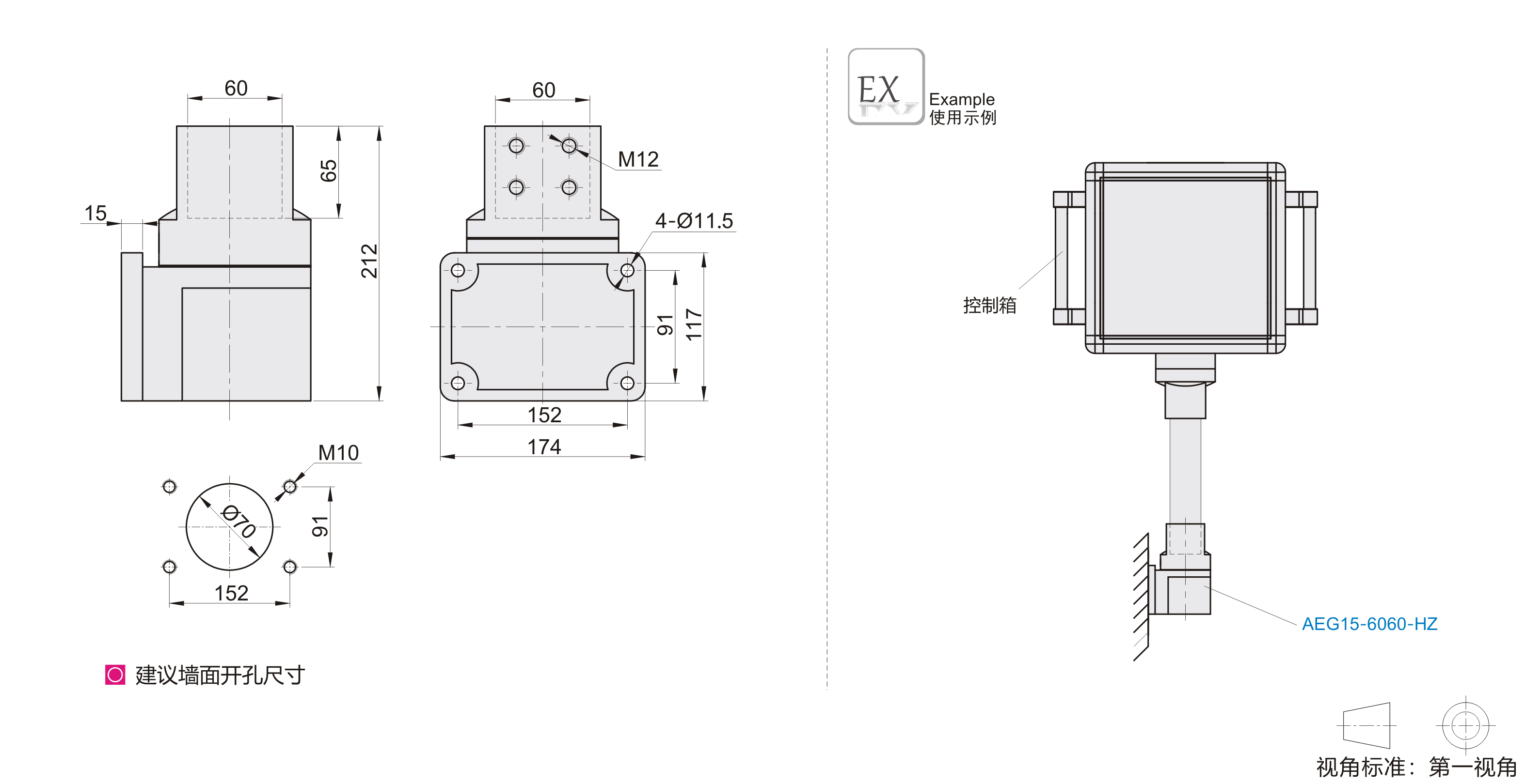 | AEG15-6060-HZ | 垂直墙座 | ADC12 | 喷塑 |