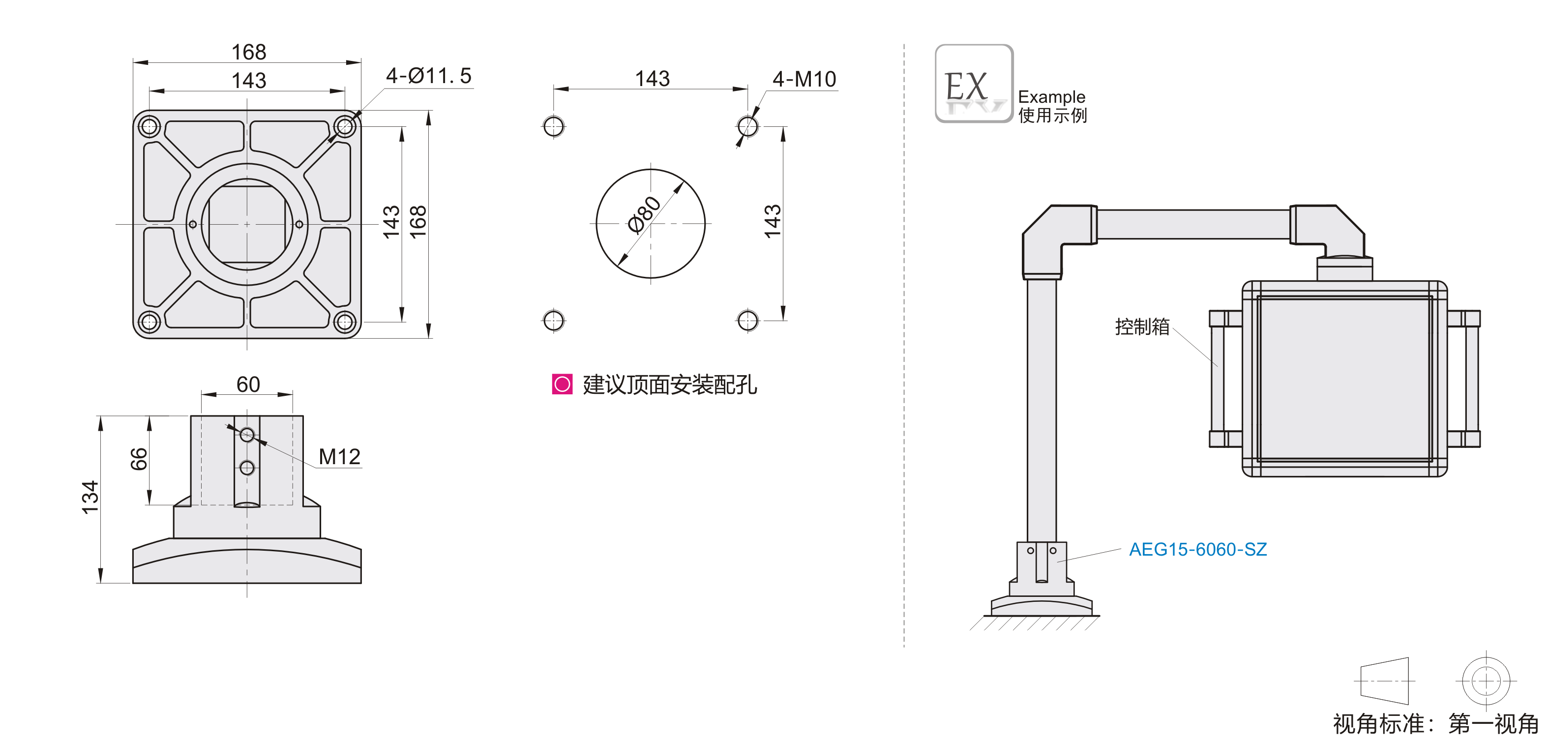| AEG15-6060-SZ | 可旋转底座 | ADC12 | 喷塑 |