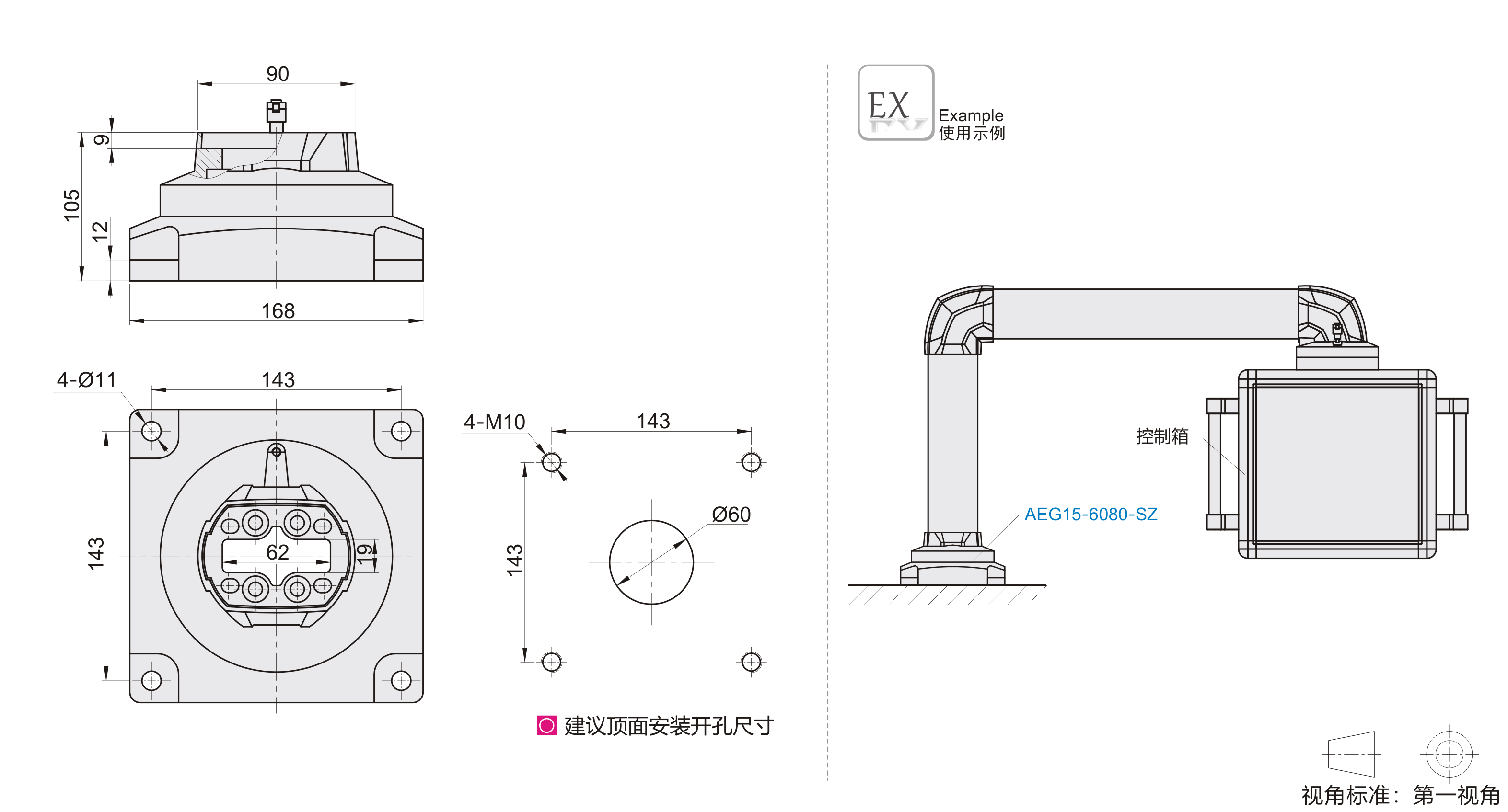 | AEG15-6080-SZ | 旋转底座 | ADC12 | 喷塑 |