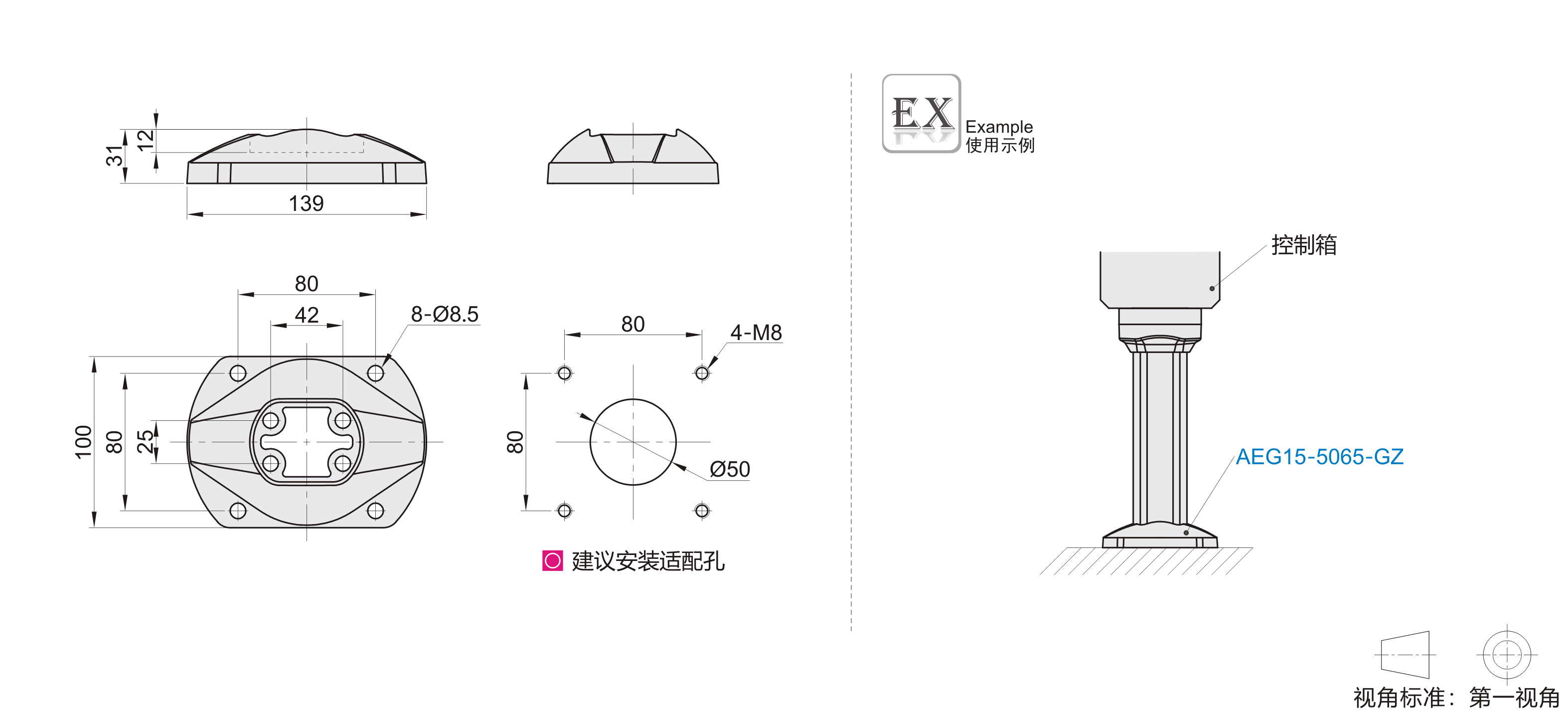 | AEG15-5065-GZ | 固定底座 | ADC12 | 喷塑 |