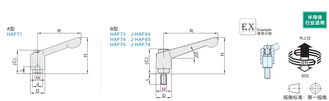 | HAF73 | 经济型圆形直杆型 | B型 | ZDC | 喷塑 | Q235 | 发黑 | — |