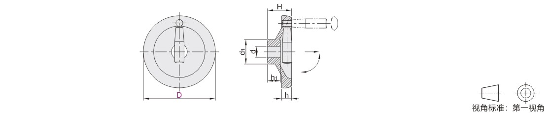收纳式实心手轮 手柄可折型 圆孔型 黑色