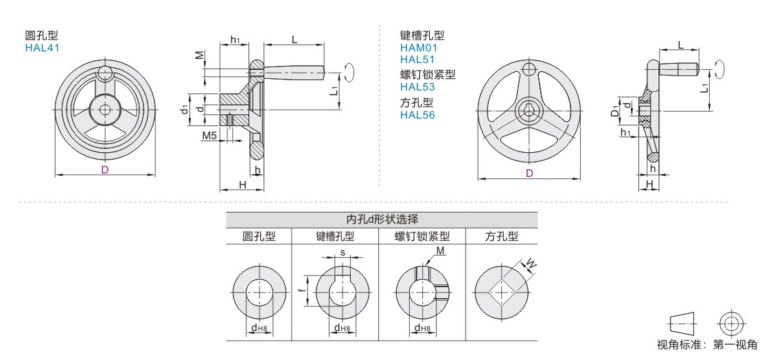 | HAL41 | 转动手柄型 | 圆孔型 | S45C | 镀锌 | PA6 | 黑色 | PA6 | 黑色 |