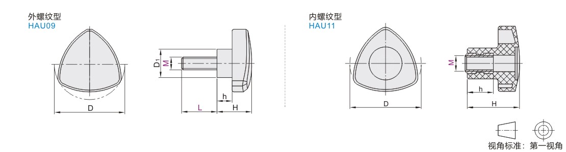 | HAU09 | 三棱把手 | 外螺纹型 | ABS | Q235 | 镀锌 |