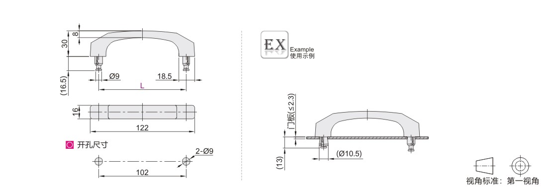 方形拉手 快速安装型 内装型 黑色 PC+ABS