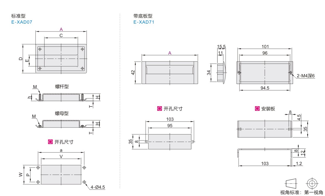 | E-XAD71 | 带底板型 | 2内螺纹 | A6063+ZDC | 阳极氧化+亮铬 | 安装板(1个) | |
