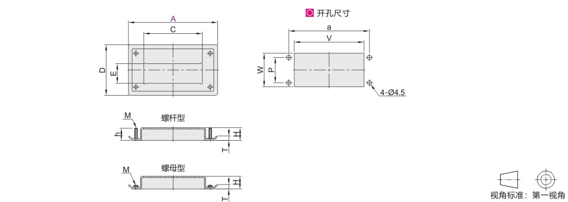 | 代码 | 类型 | 安装孔 | 材质 | 表面处理 |