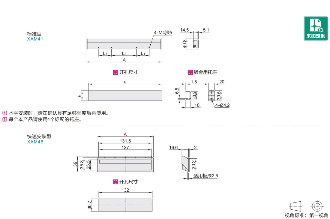 | XAM46 | 快速安装型 | ABS | 黑色沙纹面 |