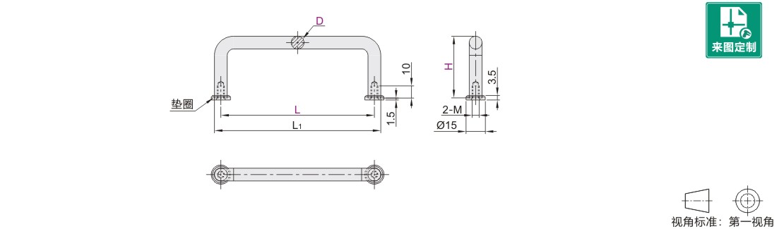 圆形拉手 外装式 后装型 固定型 带垫圈型 SUS304 电解抛光