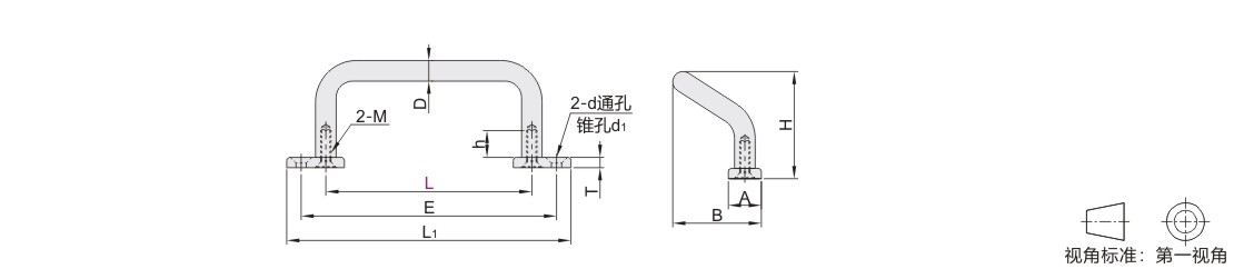 角型拉手 外装式 前后装型 固定型 斜拉型 横向外延型