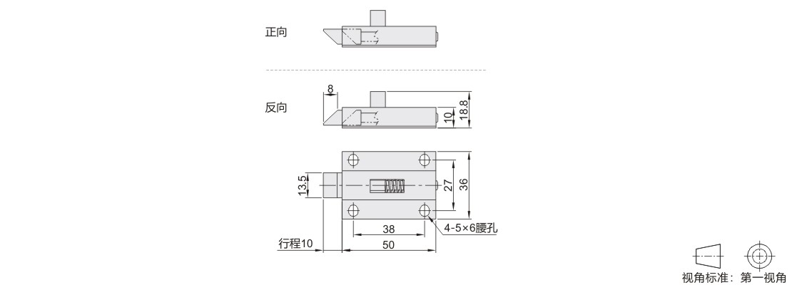 滑动式方形插销 中程距离 腰孔型 带弹簧装置