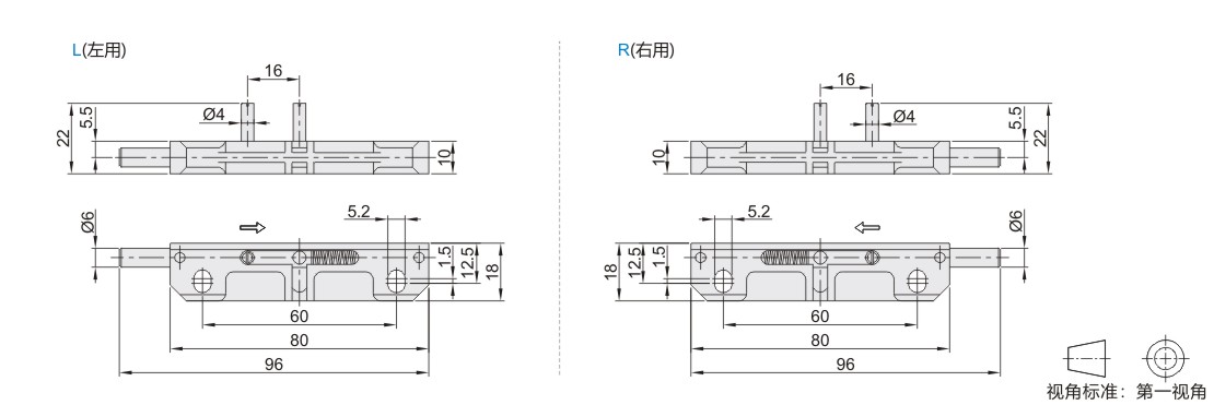 滑动式圆形插销 远程距离 左右区分型 ZDC 喷砂镀镍 带弹簧装置