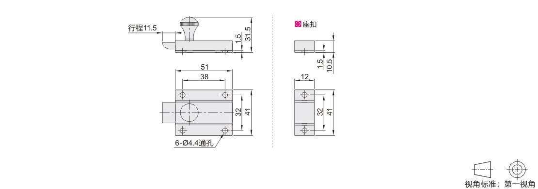 滑动式方形插销 中程距离 滚花式抓手 SUS304 表面拉丝