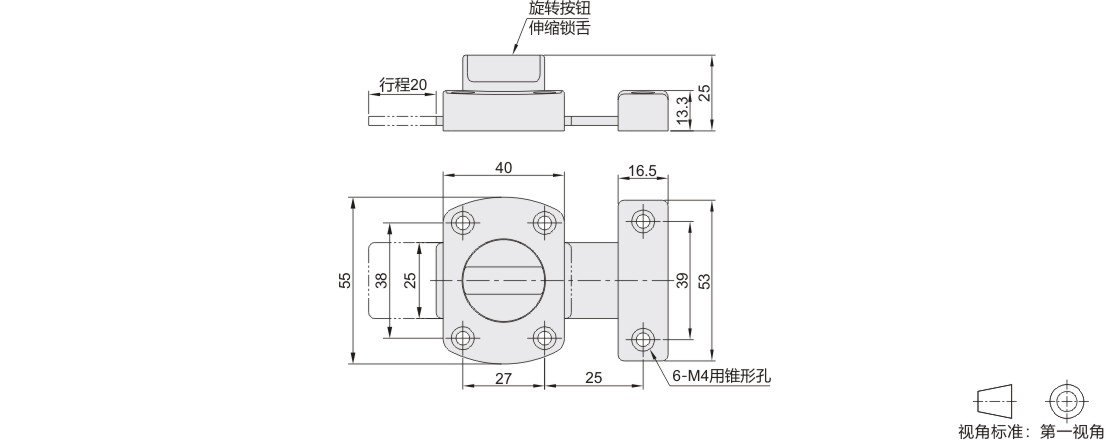 旋钮式方形插销 中程距离 无弹簧装置 旋钮解锁