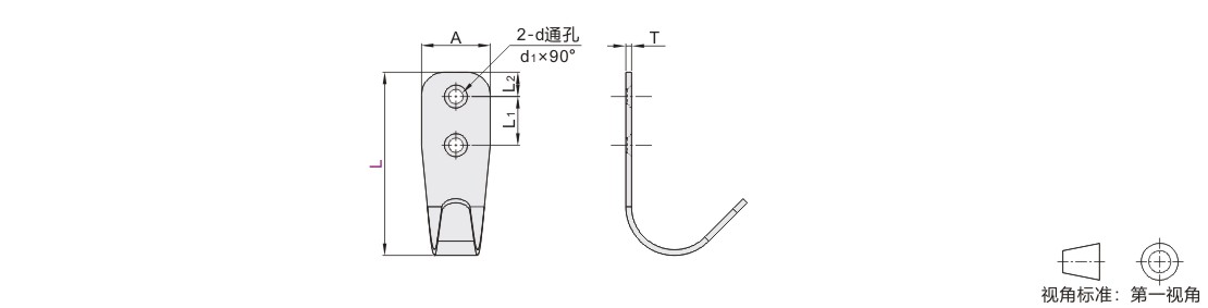 轻载型挂钩 薄型 竖向固定 SUS304 表面拉丝 垂直孔位