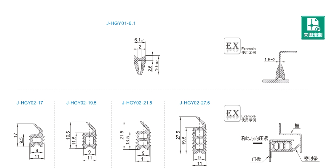 | J-HGY01 | 门用型 | EPDM | 黑色 | 65±5(邵A) | -40~ 120℃ |