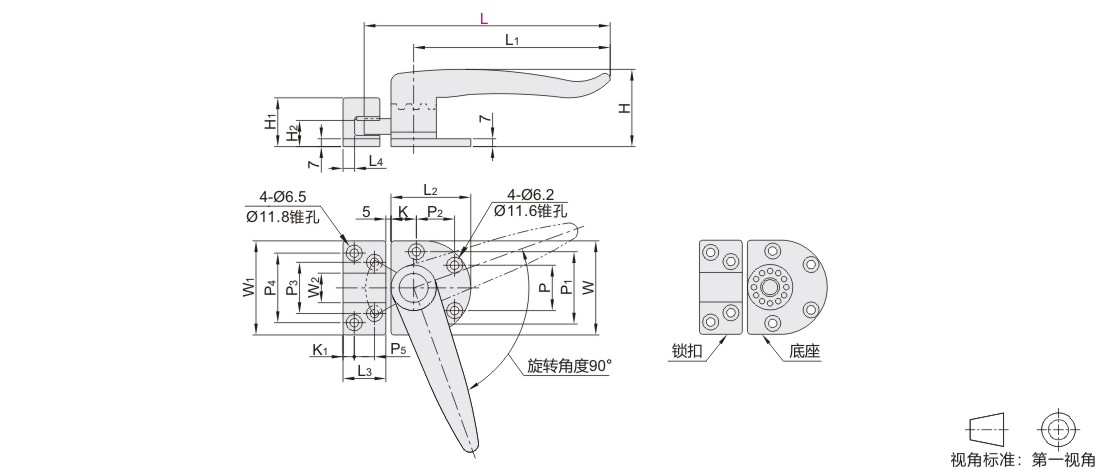密封扣 旋转压缩锁紧 大型门用 直柄型 纵向固定 SUS304 镜面抛光