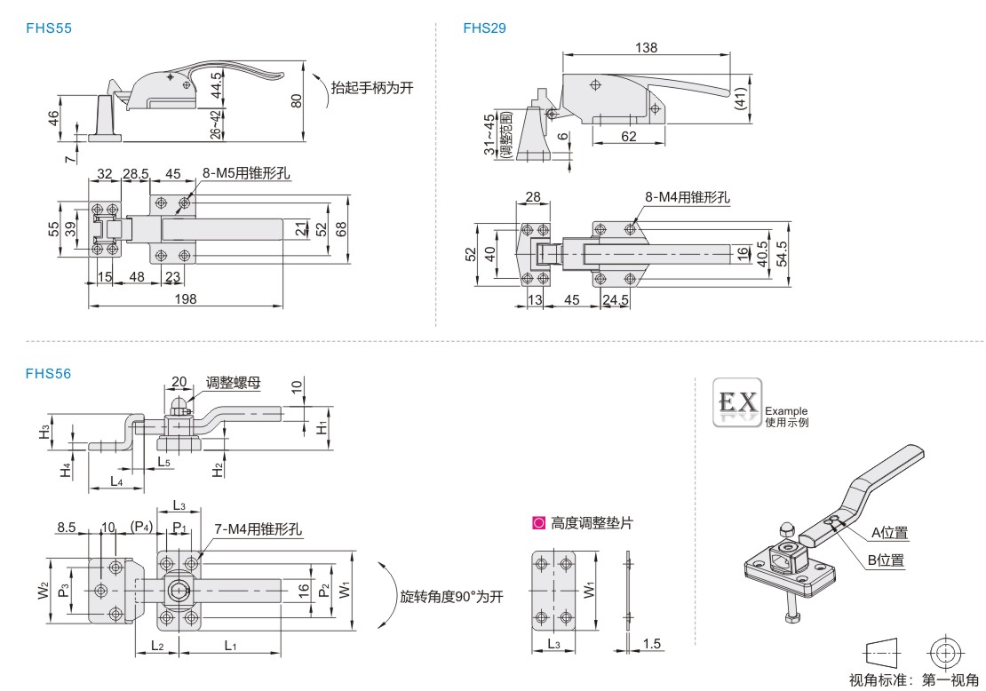 | FHS55 | 可调节型 | 拔插型 | SUS304 | 拉丝 |